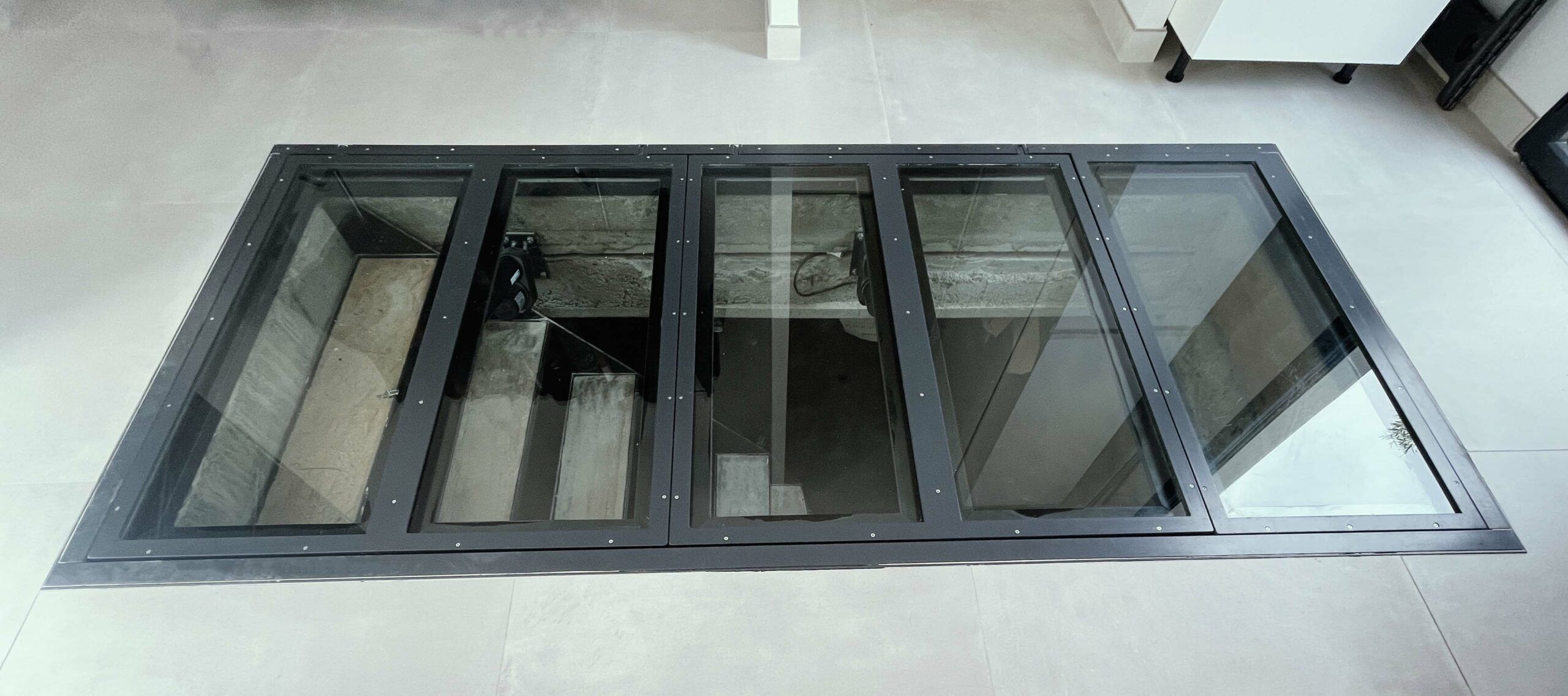 Nos trappes de cave motorisées ont été imaginées et créées pour allier innovation, esthétisme et fonctionnalité. Qu’elles soient vitrées pour laisser passer la lumière ou conçues dans des matériaux discrets pour se fondre parfaitement dans votre sol, ces trappes apportent un véritable atout à votre intérieur tout en facilitant l’accès à votre cave ou espace de stockage.